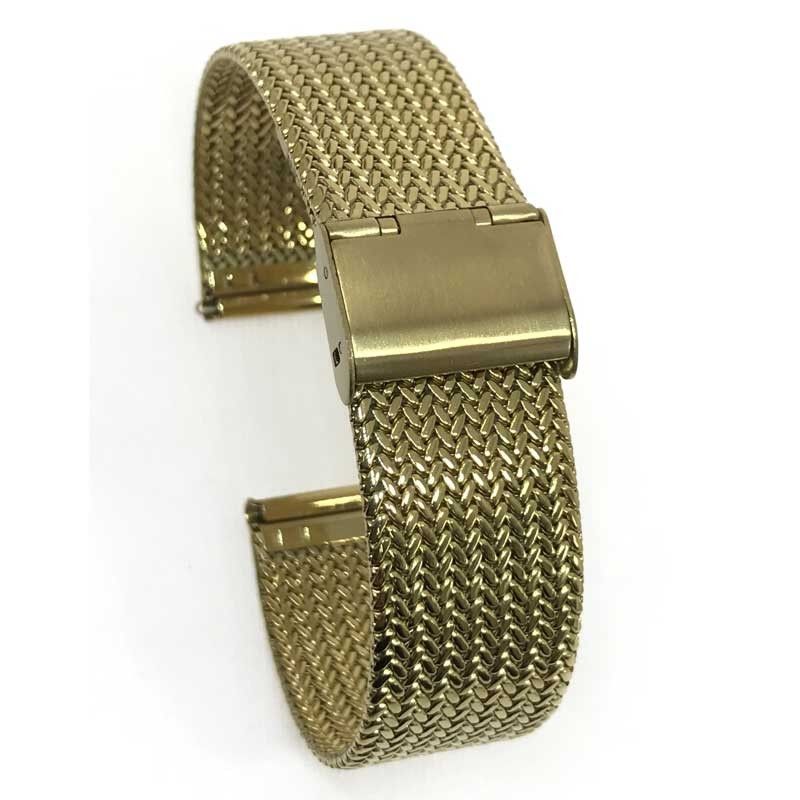 Armis metálico tipo milanesa con tejido en espiga, fabricado con hilo de acero 304L totalmente antialérgico. Disponible en medidas de 18 a 24mm y en colores acero y chapado IPG