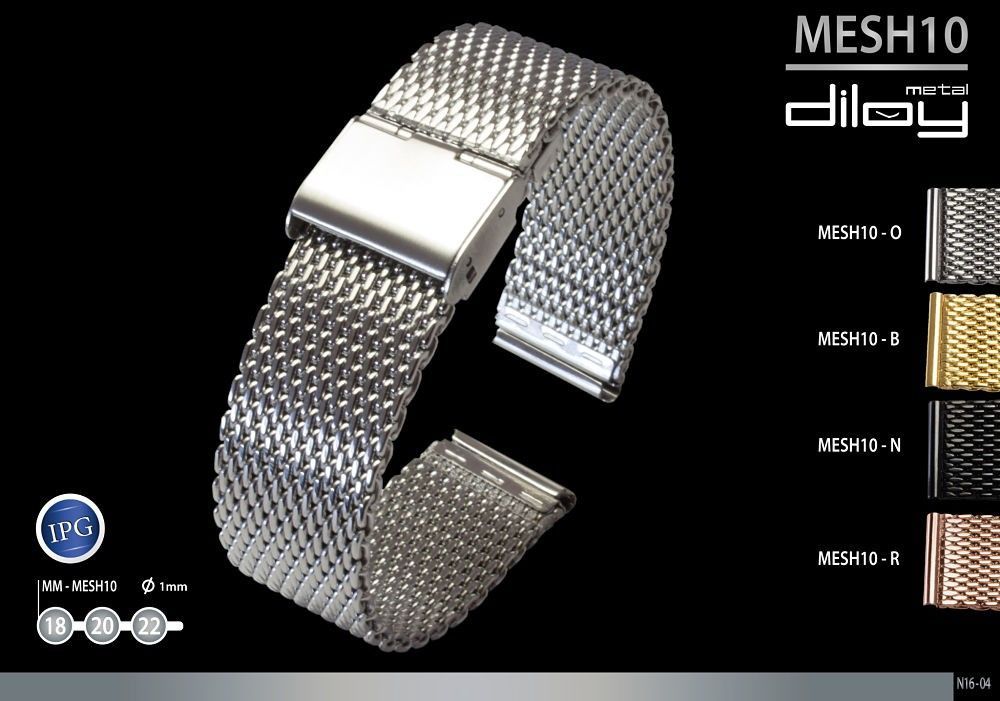 Correa de reloj Diloy modelo Mesh10 fabricada en hilo de acero trenzado milanesa. Disponible en varias medidas y colores. Estándares de calidad europeos