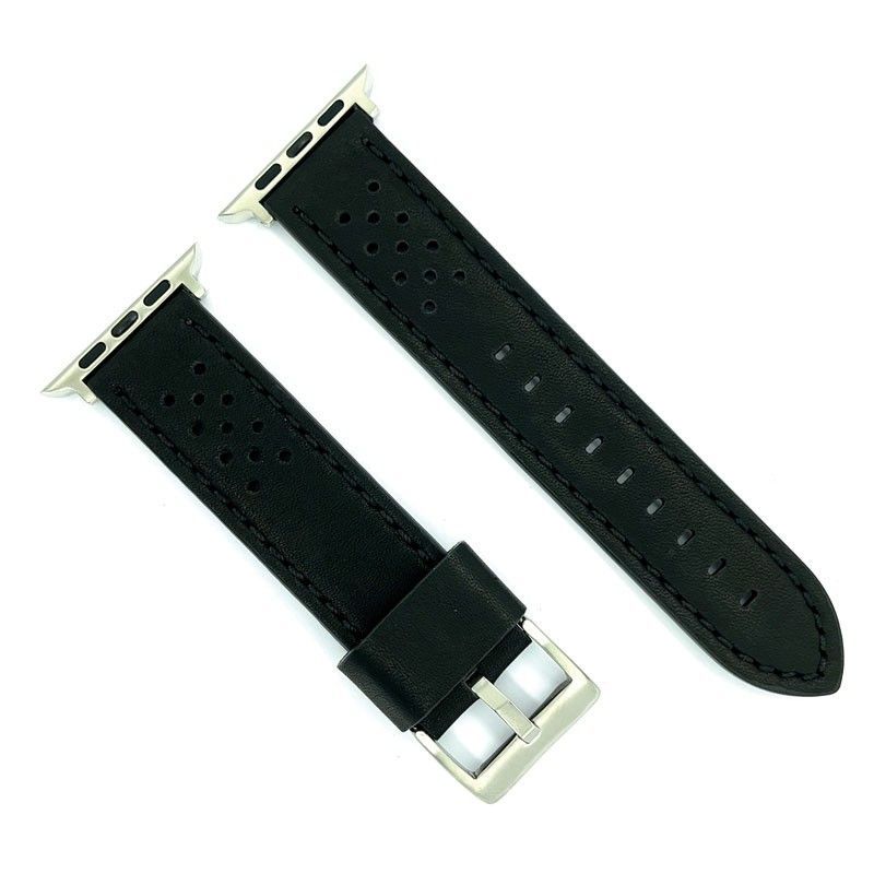 Model AWP398 to pasek racing ze skóry czarnej z kolorowymi przeszyciami, kompatybilny z Apple Watch Series 1–9, SE, SE2 i Ultra. Łączy klasyczny sportowy styl z nowoczesnym wykończeniem.