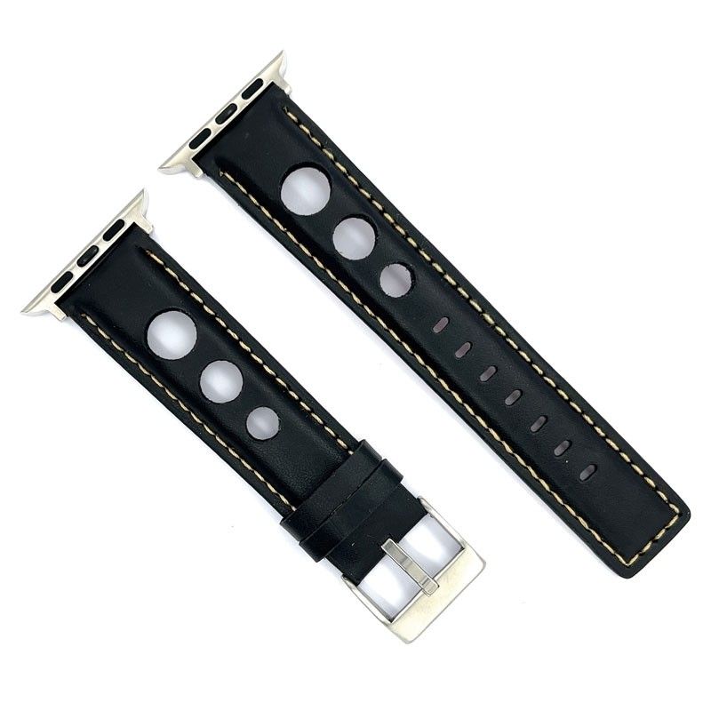 Pasek racing skórzany kompatybilny z Apple Watch – Serie 1–Ultra – 38mm–49mm – Styl perforowany – Ref AWP355