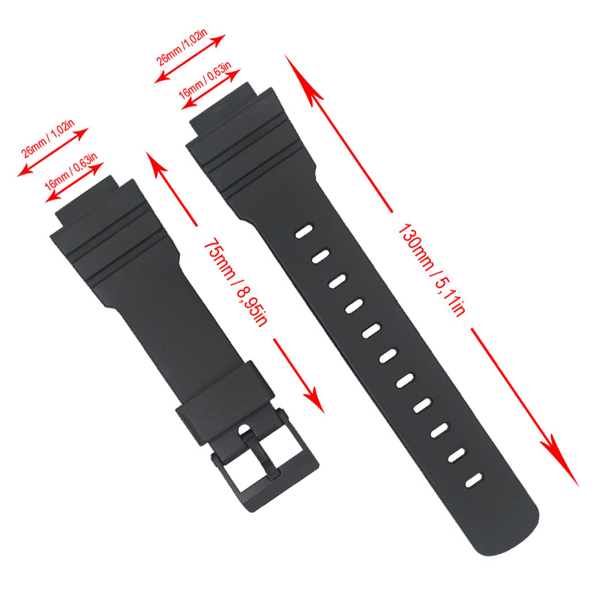 Pasek do zegarka Diloy model 194P3 wykonany z PU, plastikowa klamra. Rozmiar 16 mm. Kompatybilny z zegarkami Casio G-5600E, GW-M5610, DW-5600E, DW-5000SL, GW-M5600, G-5700B, DW-5000, DW-5000SL, DW-5200C, DW-5400C, DW-5600, DW-5600C, DW-5600E, DW-5600EB, DW-5600EV, DW-5600SL, DW-5600SN, DW-5600TB, DW-5700C, DW-5750E, G-5600, G-5600E, G-5700, G-5700B, G-5700RB, GW-M5600, GW-M5610, WW-5100C, DW-5600BBN, DW-5025B i inne.