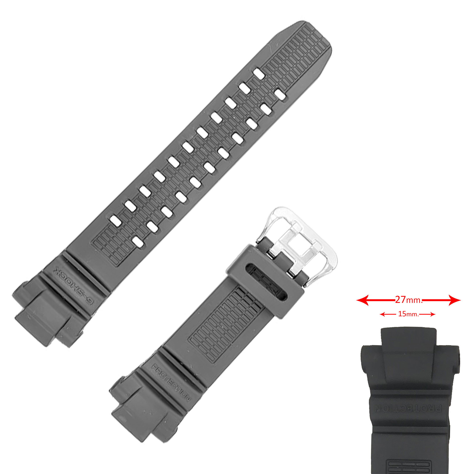 Correa de reloj Diloy modelo W1132 fabricada en PU, hebilla metálica de acero. Medida 27mm. Compatible con relojes Casio G-1000, G-1200, G-1250, G-1500, GW-2000, GW-2500, GW-3000, GW-3500