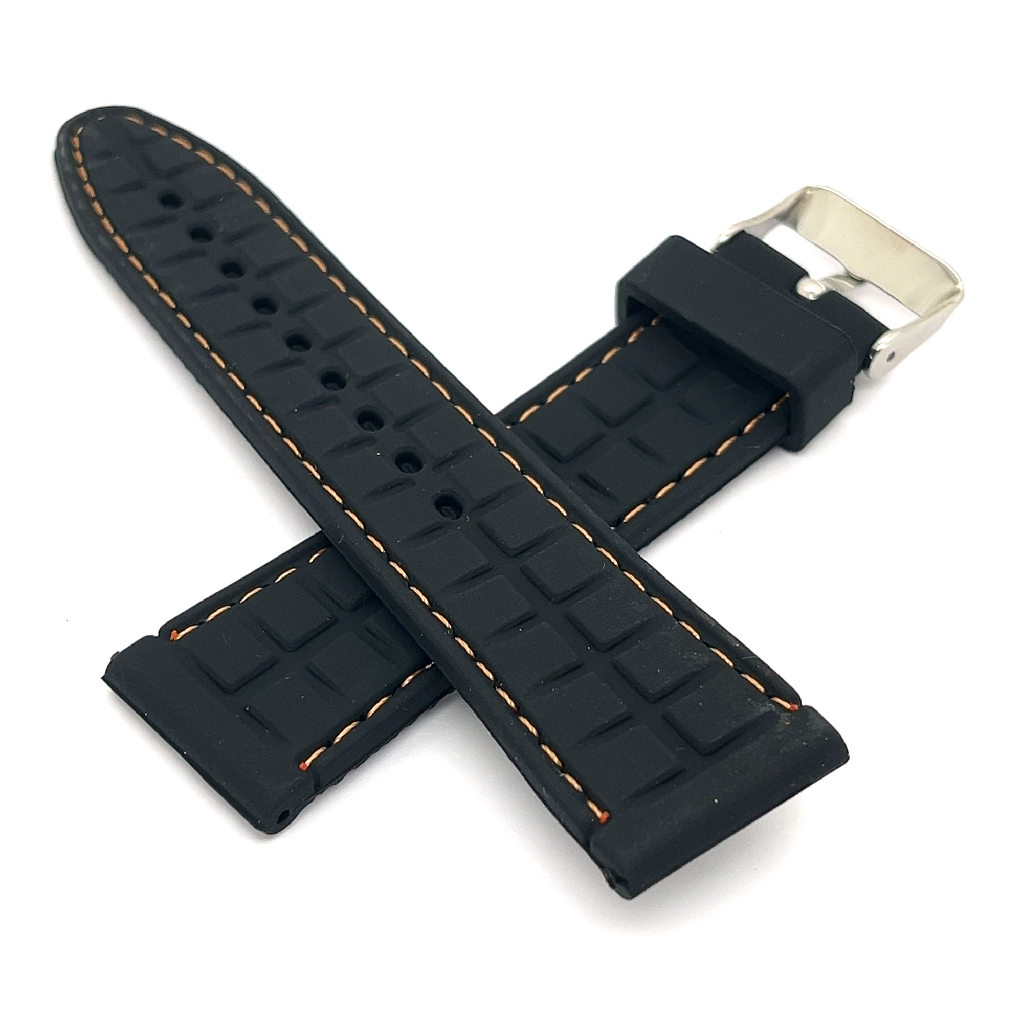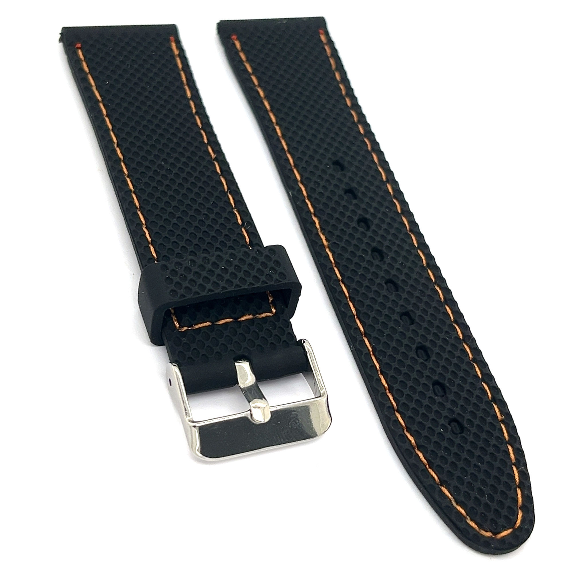 Pasek do zegarka silikonowy z teksturą i sportowymi przeszyciami BR22 – Czarny z przeszyciami czerwonymi niebieskimi białymi czarnymi – 18mm 20mm 22mm 24mm