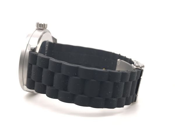 Czarny pasek silikonowy BR31 z ukrytym zapięciem. Dostępny w 20mm i 22mm. Wygodny i wodoodporny. Zobacz więcej pasków silikonowych.