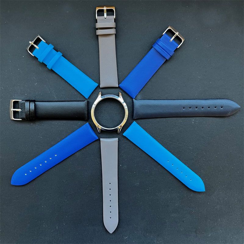 Skórzany pasek do zegarka eleganckiego – Skóra bydlęca bez szwów, wypukły, minimalistyczny i elegancki design, stalowa klamra – Rozmiary 12mm, 14mm, 16mm, 18mm, 20mm, 22mm – Diloy 301