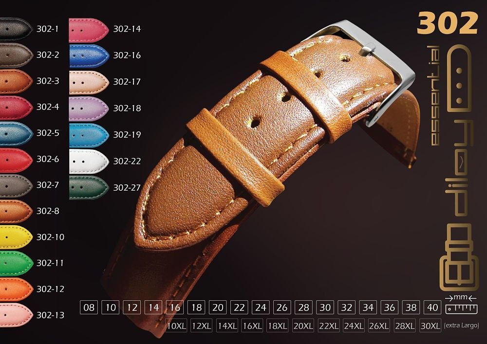 Skórzany pasek do klasycznego zegarka – Gładka cielęca skóra szyta, wypukła, stalowa klamra – Rozmiary 8mm, 10mm, 12mm, 14mm, 16mm, 18mm, 19mm, 20mm, 22mm, 24mm – Diloy 302