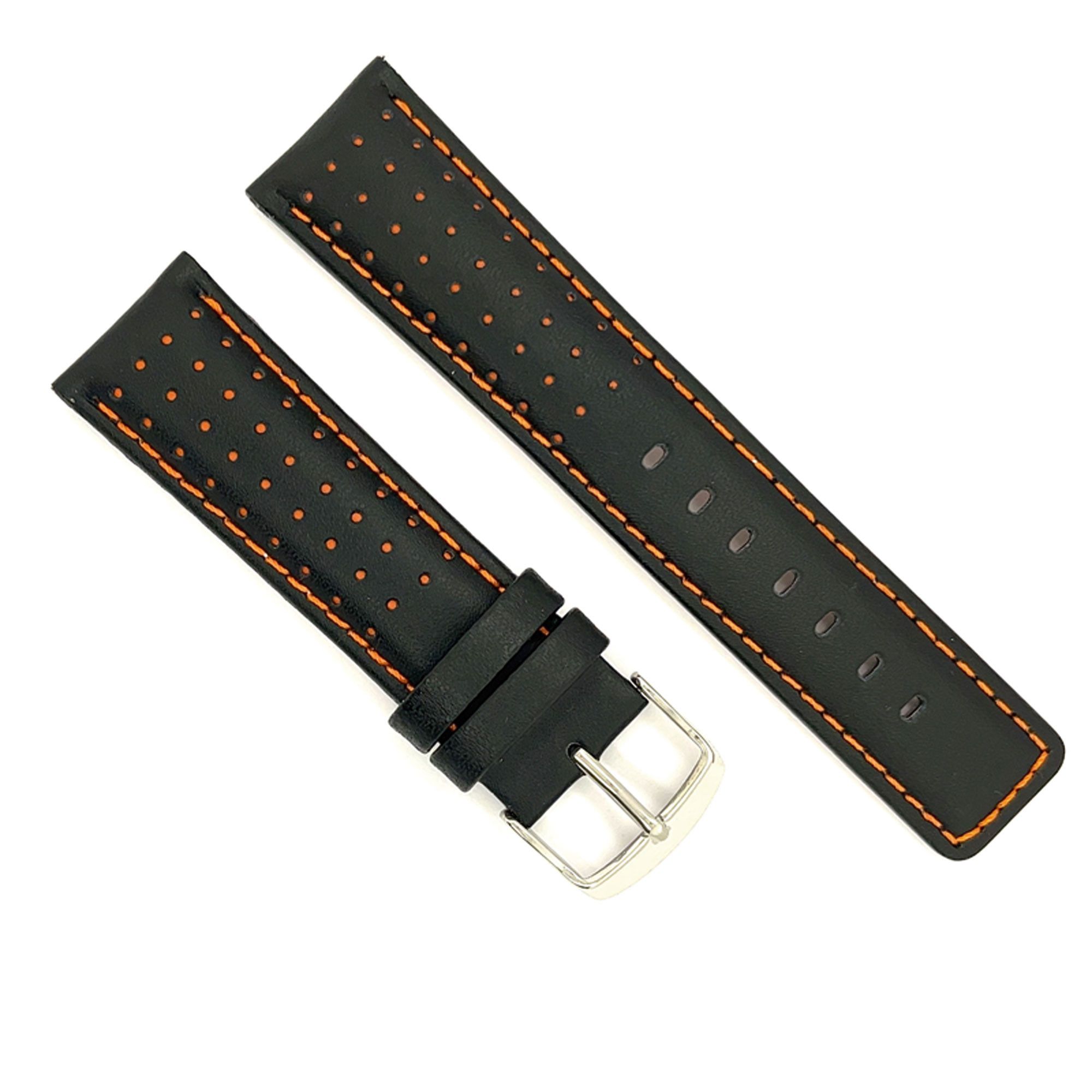 Pasek skórzany perforowany styl rally racing Kontrastowe przeszycie – Sportowy do zegarka – Rozmiary 18mm 20mm 22mm 24mm – Czarny, brązowy, czerwony, granatowy Diloy 367
