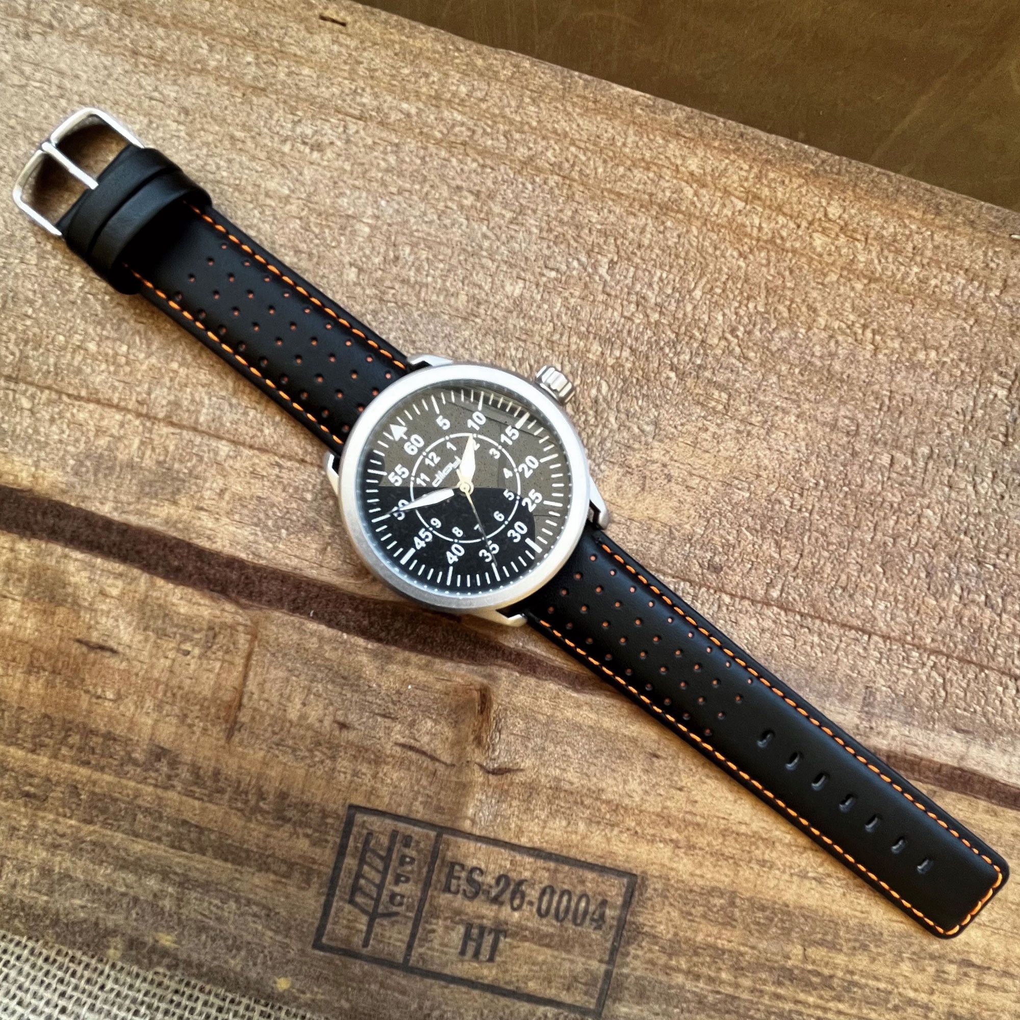 Znany także jako pasek perforowany, pasek rallye lub pasek z dziurkami, model ten jest idealny do personalizacji zegarków sportowych, casualowych lub inspirowanych stylem vintage. Dostępny w rozmiarach 18mm, 20mm, 22mm i 24mm, pasuje do większości zegarków z prostymi uszami. Oferowany w kolorach czarnym, ciemnobrązowym, jasnobrązowym, czerwonym i granatowym, każdy wariant ozdobiono efektownym kontrastowym przeszyciem dla nowoczesnego i sportowego wyglądu.