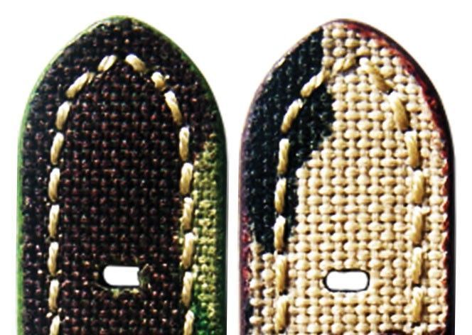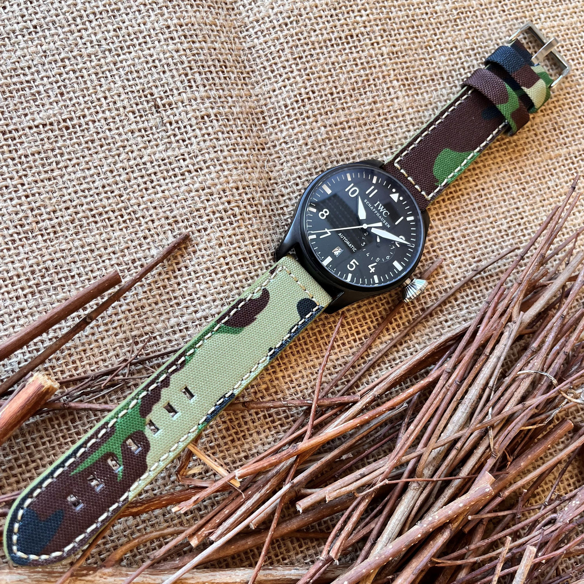 Pasek do zegarków z materiału w stylu kamuflarz oraz włoskiej skóry krowiej.