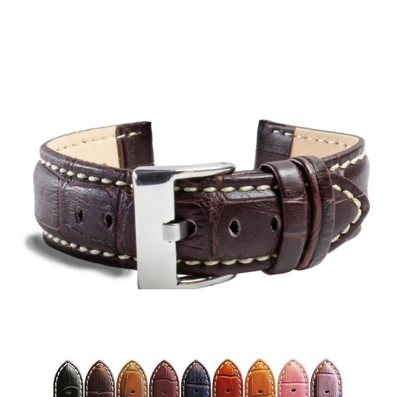 | Bullet2 | 🛠️【MATERIAŁY】 Pasek do zegarka ze skóry bydlęcej z tłoczeniem krokodyla i widocznymi szwami. Wnętrze z miękkiej skóry dla większego komfortu. Niektóre modele mają wkładkę dla objętości. Sprzączka ze stali nierdzewnej, trwała i hipoalergiczna. Klasyczny, funkcjonalny styl, idealny jako zamiennik do zegarków eleganckich. |