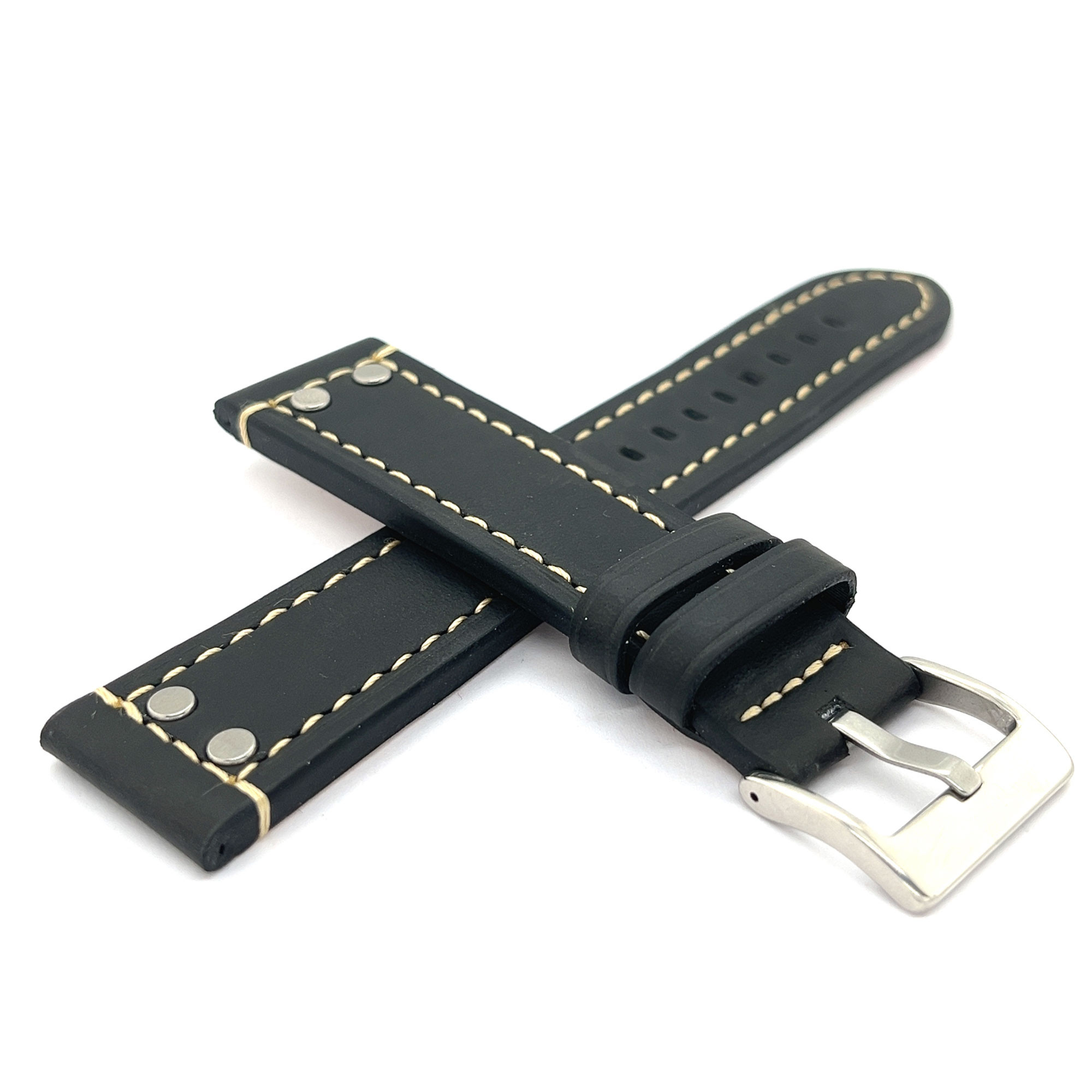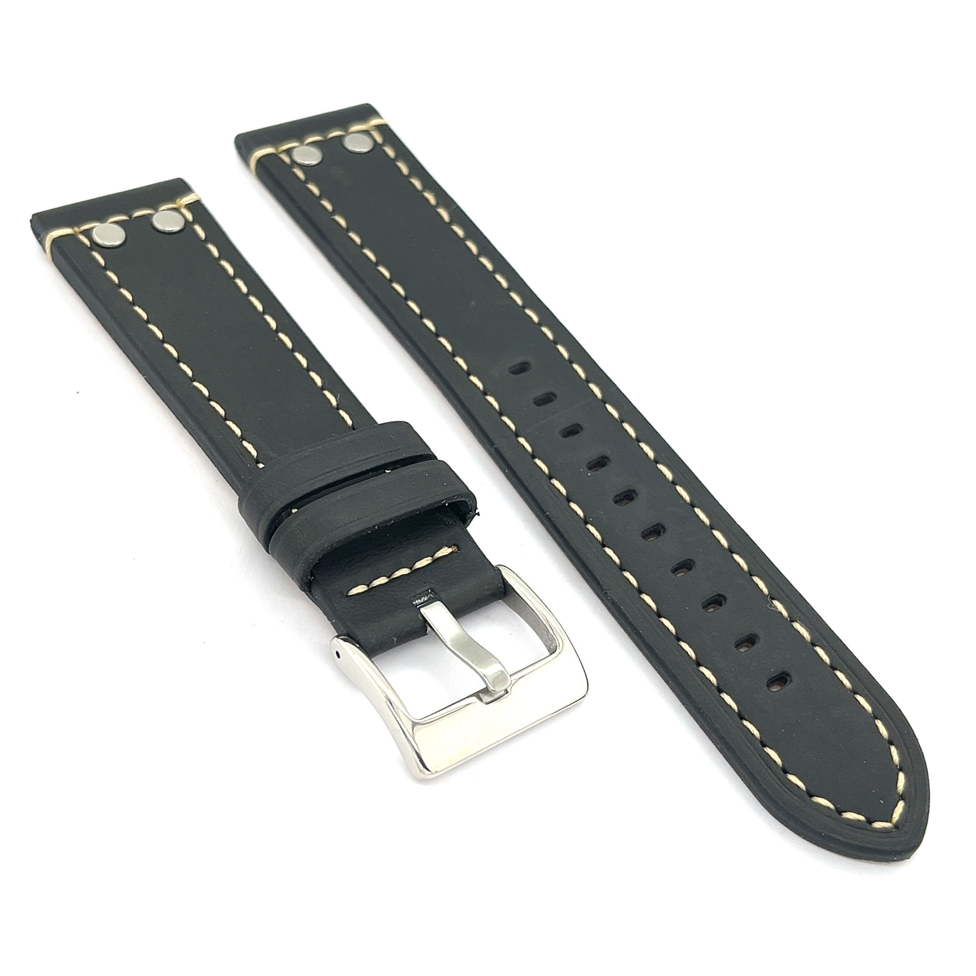 Pasek olejowana skóra cielęca styl lotniczy pilot flieger z nitami – Rozmiary 18mm 20mm 22mm 24mm – Czarny ciemnobrązowy jasnobrązowy – Sportowy klasyczny – Diloy 381