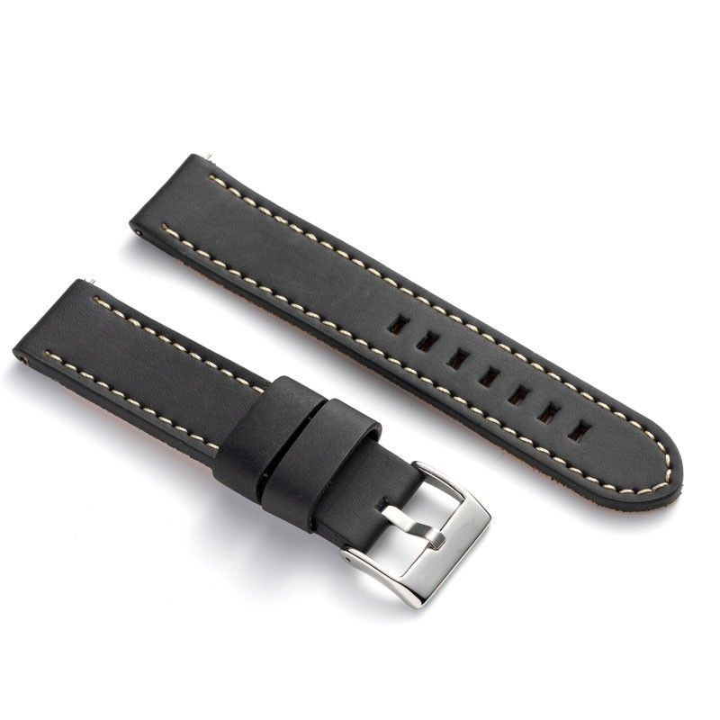 Skórzany pasek vintage z białym przeszyciem – Do zegarków sportowych lub klasycznych – Rozmiary 18mm 20mm 22mm 24mm 26mm – Ręcznie robiony – Czarny lub brązowy – Diloy 384