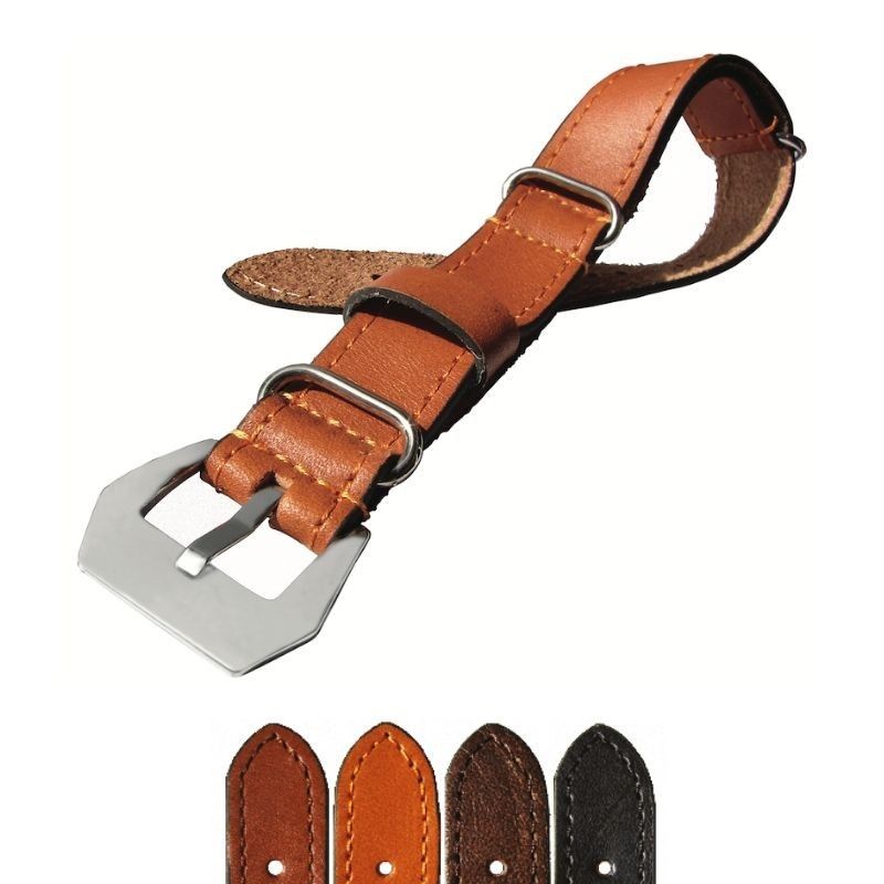Pasek NATO skóra gładka – Jednoczęściowy, klamry i pierścienie stalowe – Styl sportowy – 18mm 20mm 22mm 24mm – Diloy 385