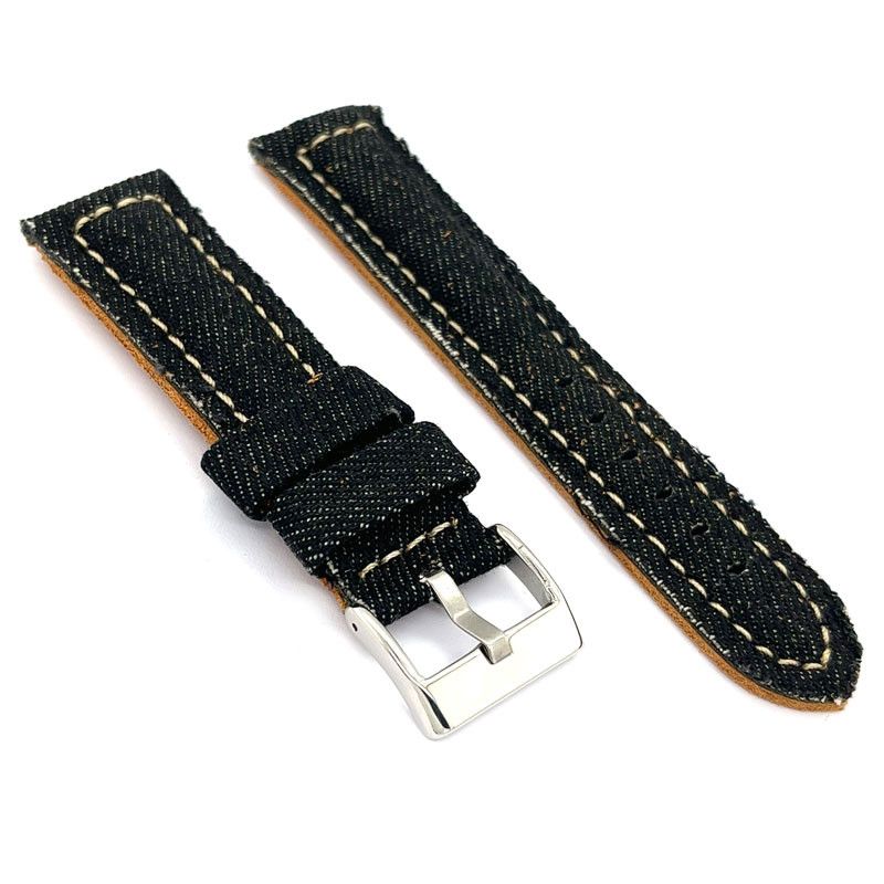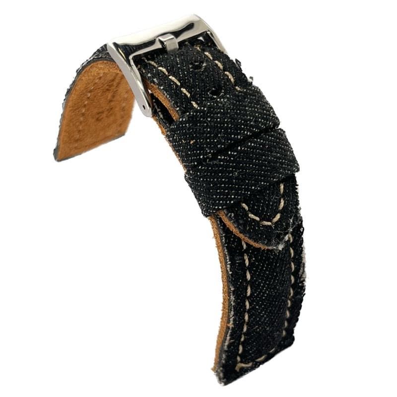 Pasek do zegarka z denimu wypukły – Styl vintage casual – Podszycie skórą – Czarny niebieski beżowy zielony – Rozmiary 18mm 20mm 22mm 24mm – Diloy 389