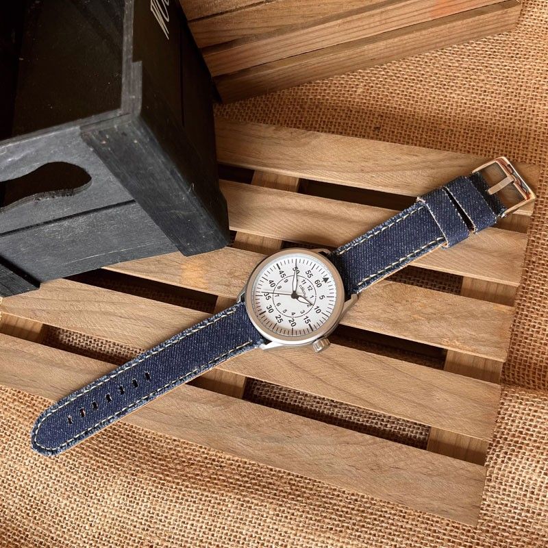 Pasek do zegarka materiał jeans frędzle podszycie skórzane płaski sportowy – Rozmiary 18mm 20mm 22mm 24mm – Diloy 390