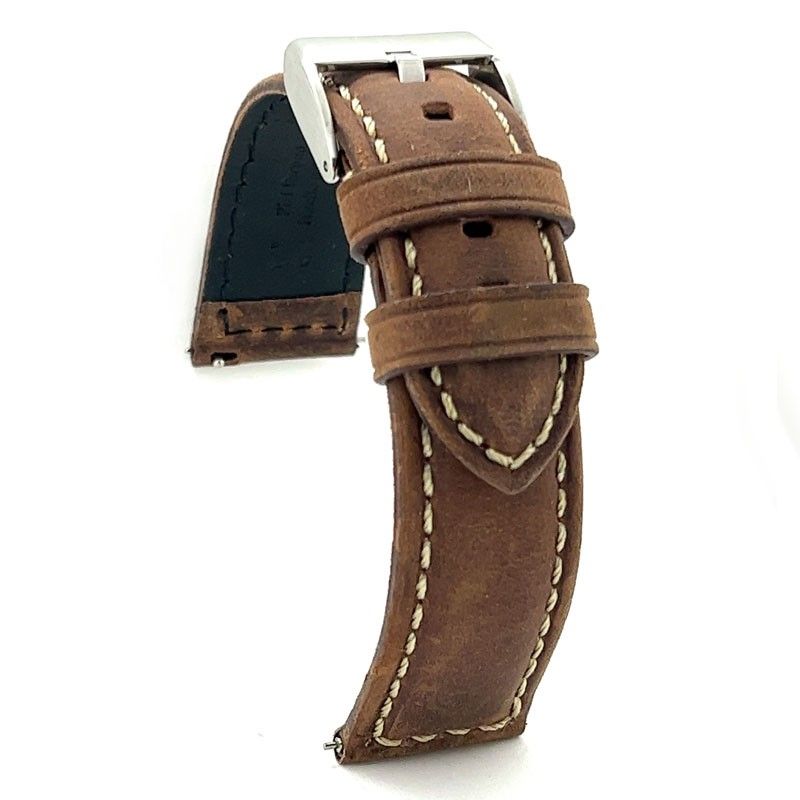 Dostępny w rozmiarach 20mm, 22mm i 24mm, pasuje do większości zegarków z prostymi uszami. Skóra crazy horse z czasem nabiera naturalnej patyny, podkreślając charakter vintage. Klamra ze stali nierdzewnej zapewnia trwałość i odporność na korozję nawet przy intensywnym użytkowaniu.