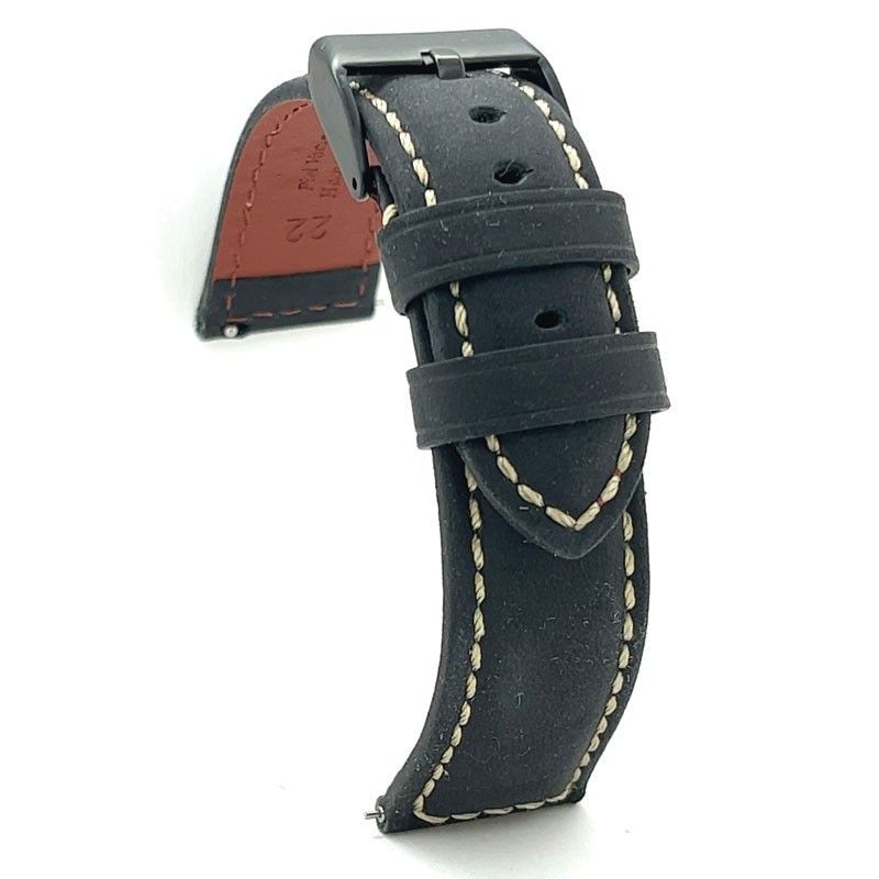 Pasek do zegarka skóra crazy horse białe przeszycie czarna klamra sportowy – Rozmiary 20mm 22mm 24mm – Diloy 397