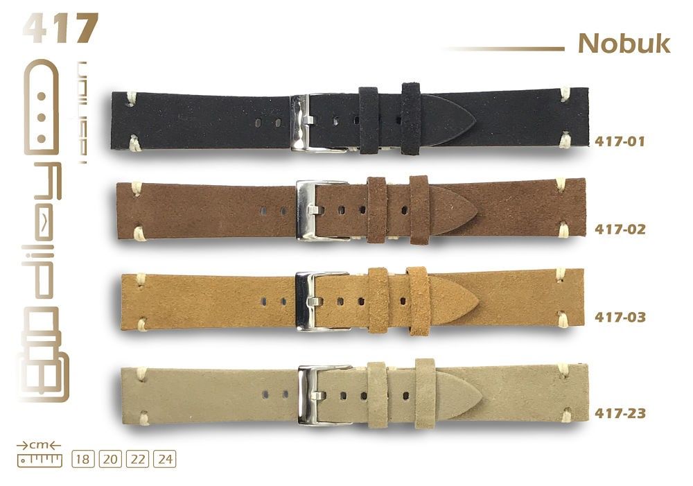 Dostępne rozmiary to 18mm, 20mm, 22mm i 24mm, w kolorach czarnym, ciemnobrązowym, jasnobrązowym i szarym. Płaski profil sprawia, że pasek idealnie pasuje do zegarków klasycznych, retro i casualowych. Skóra nubuk zapewnia doskonałą oddychalność i komfort nawet przy długotrwałym użytkowaniu.
