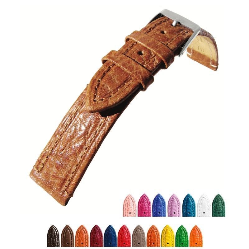 Pasek do Zegarka ze Skóry Cielęcej z Tłoczeniem Bizona – Klasyczny Płaski Styl, Klamra Stalowa – Do Zegarków Eleganckich – Rozmiary 12mm do 22mm (parzyste) – Diloy P178