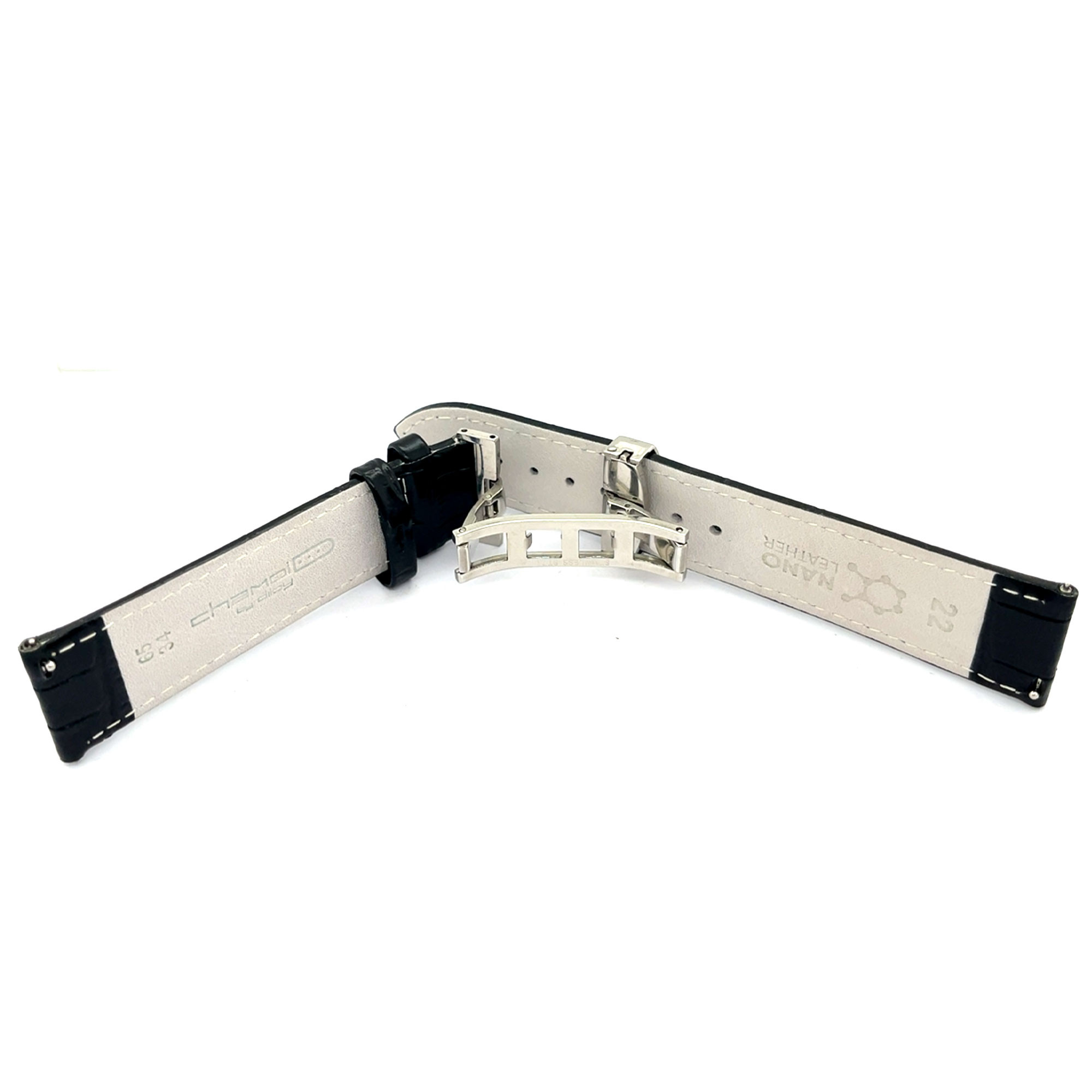 Skórzany pasek klasyczny z tłoczeniem krokodyla – zapięcie ukryte – 20mm 22mm – stylowy i trwały – Ref. 336 Diloy