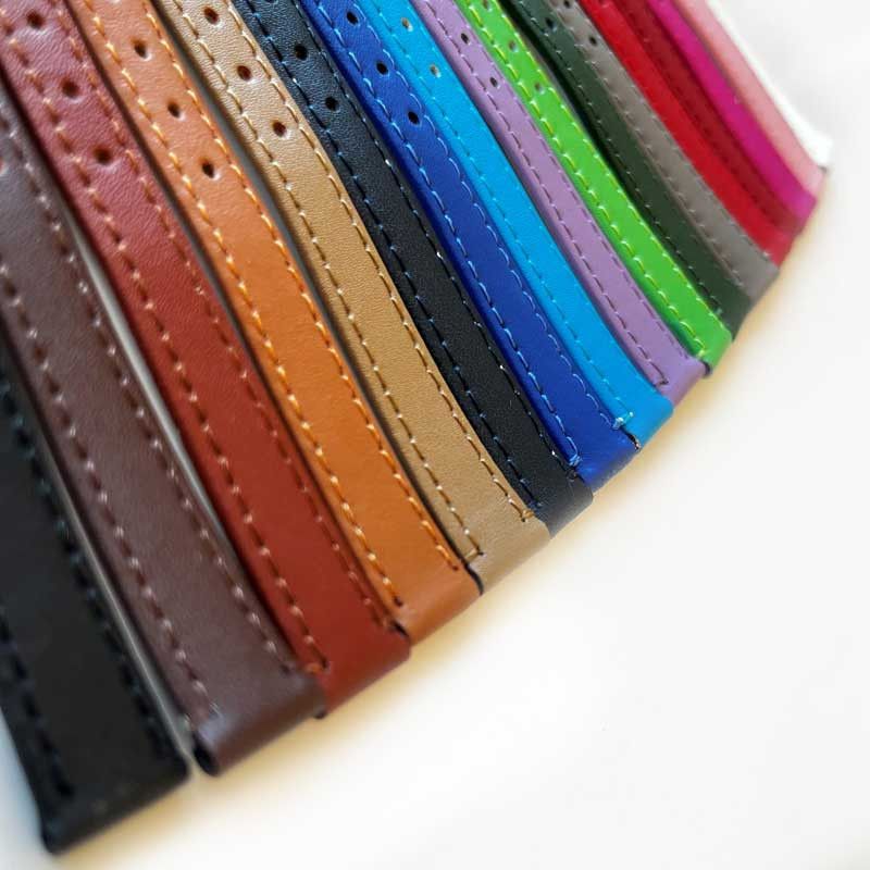 Dostępny w rozmiarach 12mm, 14mm, 16mm, 18mm i 20mm. Bogaty wybór kolorów: czarny, ciemnobrązowy, jasnobrązowy, średni brąz, bordowy, granatowy, czerwony, szary, żółty, zielony, pomarańczowy, jasnoróżowy, fuksja, niebieski, beżowy, fioletowy, błękitny, biały, zielony militarny.