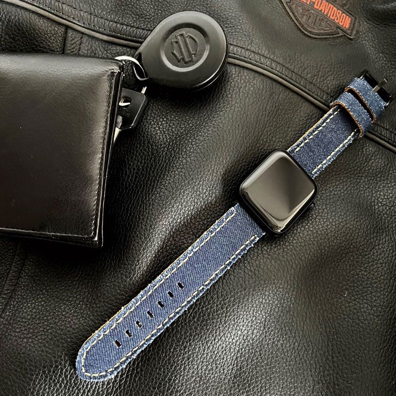Pasek kompatybilny z Apple Watch wykonany z denimu i skóry. Ref AW390